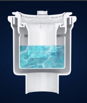 Он съемный и имеет дренажную структуру вихревого типа. Тройной фильтр предотвращает засорение волос и облегчает очистку.