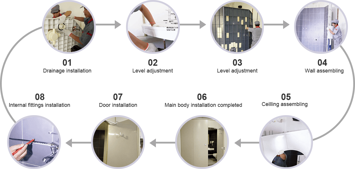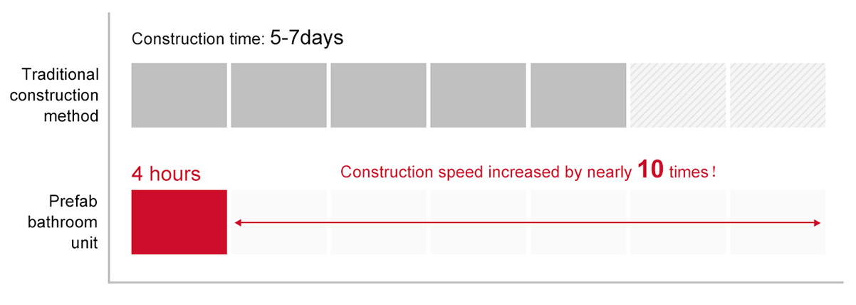 Использование сухого строительства и "строительных блоков" монтаж, полный санузел можно установить за 4 часа.